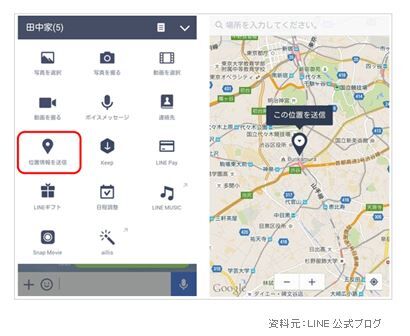 ☆自分の位置情報を相手に送信する機能↓