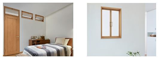 ■プライバシーを守るランマ用窓 ■窓から離れた部屋には両開き窓