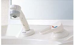 洗面台の蛇口は水温と流量をレバー1本で調節できます。