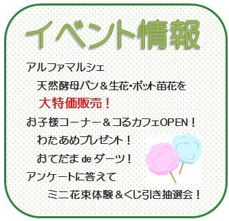 ■アルファマルシェ 生花・ポット苗花(10時~) 天然酵母パン(11時~)大特価販売いたします!!